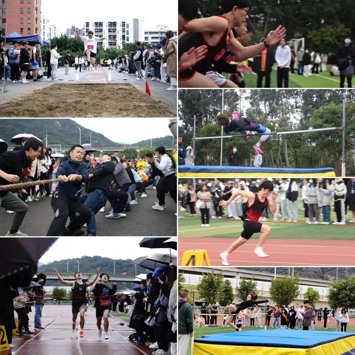 在两天的比赛中,参赛选手赛出水平、夺取佳绩,共有7项8人次打破学校学生记录,7项15人次打破学校教工纪录。全校师生用饱满的热情赶走细雨的干扰。赛场上,运动员激情飞扬、奋力拼搏,裁判员坚持原则,规范裁决;赛场外,志愿者和后勤工作人员热情高效、甘于奉献,师生们文明观赛、热情助威,展现了福商师生团结奋进、文明向上的良好精神风貌。