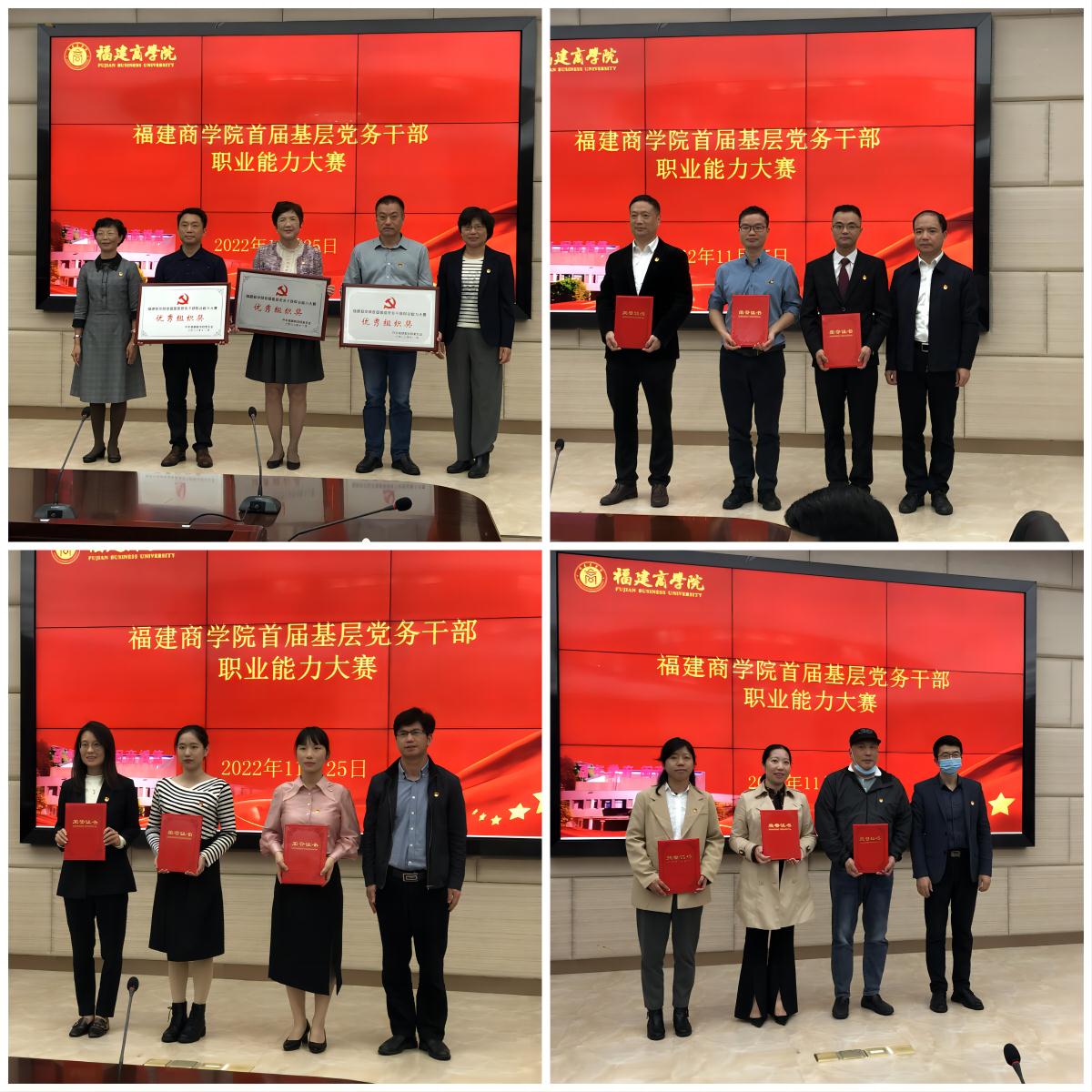 11月25日下午,bsport官网举行首届基层党务干部职业能力大赛决赛。福建教育学院党委组织部部长肖龙井、福州大学党委组织部副部长钟钛申、闽江学院党委组织部副部长张万辉、校马克思主义学院院长林萍应邀担任决赛评委。各二级党委负责人、组织员和党支部书记代表等现场观摩比赛。校党委副书记吴访益出席指导并为获奖单位颁奖。
