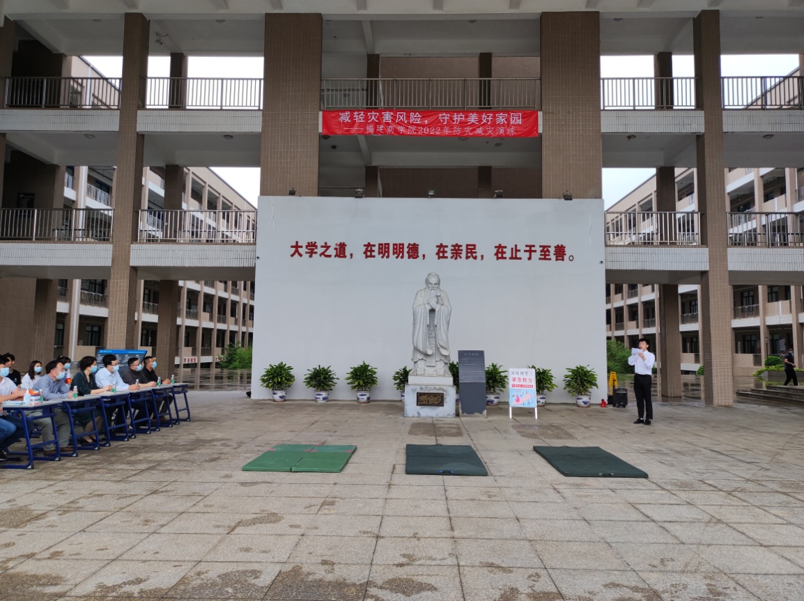 今年5月12日是第14个全国防灾减灾日。为广泛营造防灾减灾教育宣传氛围,大力加强师生防灾减灾意识,全面提升学校防灾减灾水平,5月10日,bsport官网在连江校区举办以“减轻灾害风险 守护美好家园”为主题的2022年防灾减灾演练活动。校长程灵、副校长蒲文庆参加活动,安全保卫处、后勤管理处有关人员和师生代表共200人参演。