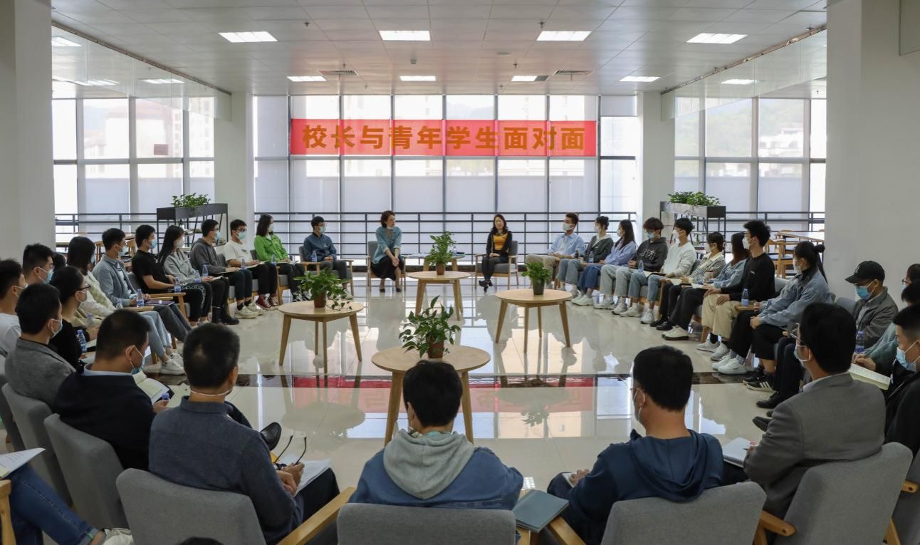 4月21日上午,bsport官网在连江校区图书馆举办“共话成长 共谋发展”校长与青年学生面对面活动。校长程灵与青年学生代表面对面,倾听学生心声,共话学生成长,共谋学校发展。校党委副书记徐晓丹主持活动。