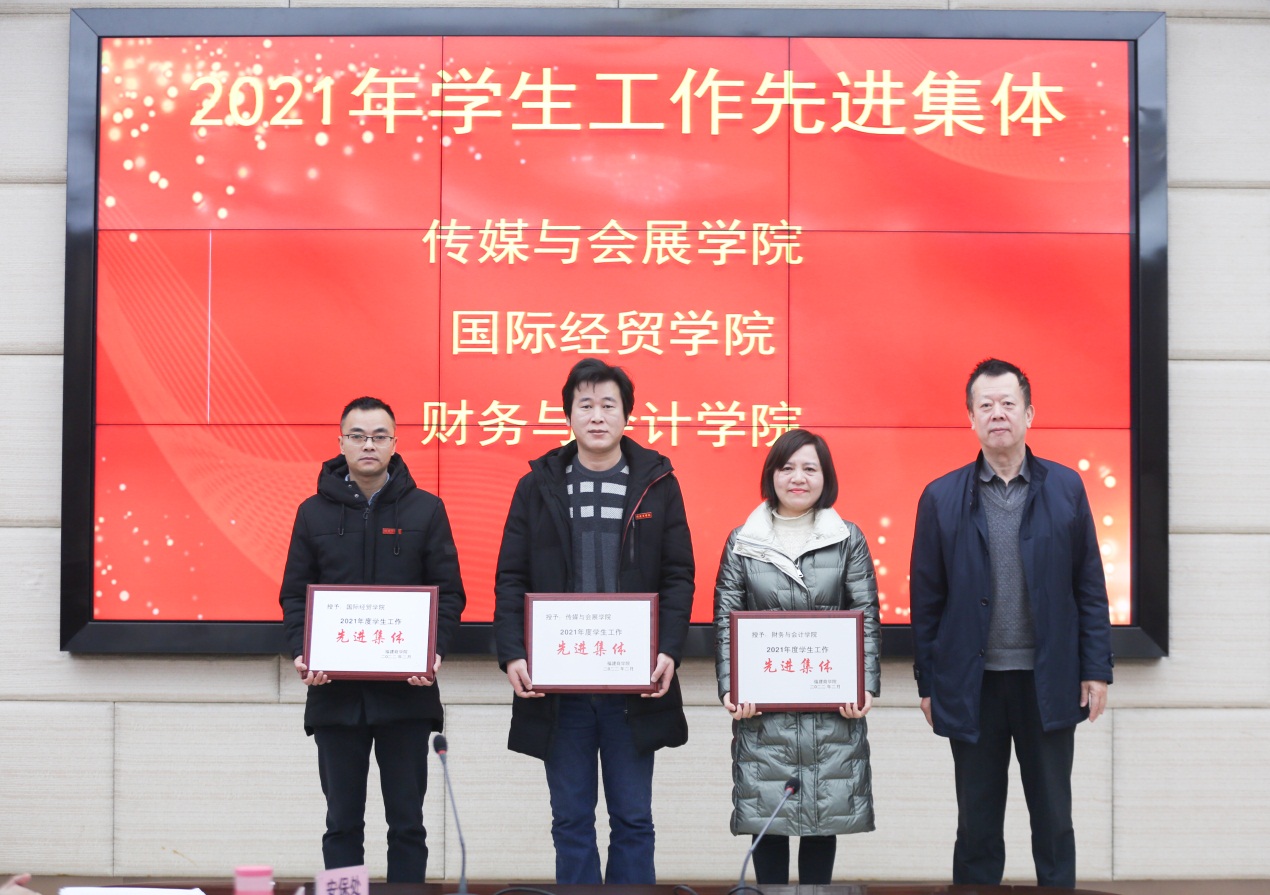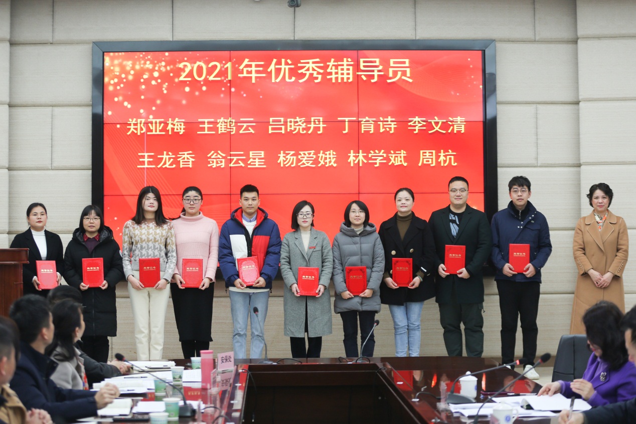 校长程灵宣读了学生工作先进集体、2020-2021学年优秀辅导员、2021年学生思想政治教育优秀工作案例获奖名单,并为优秀辅导员颁奖。