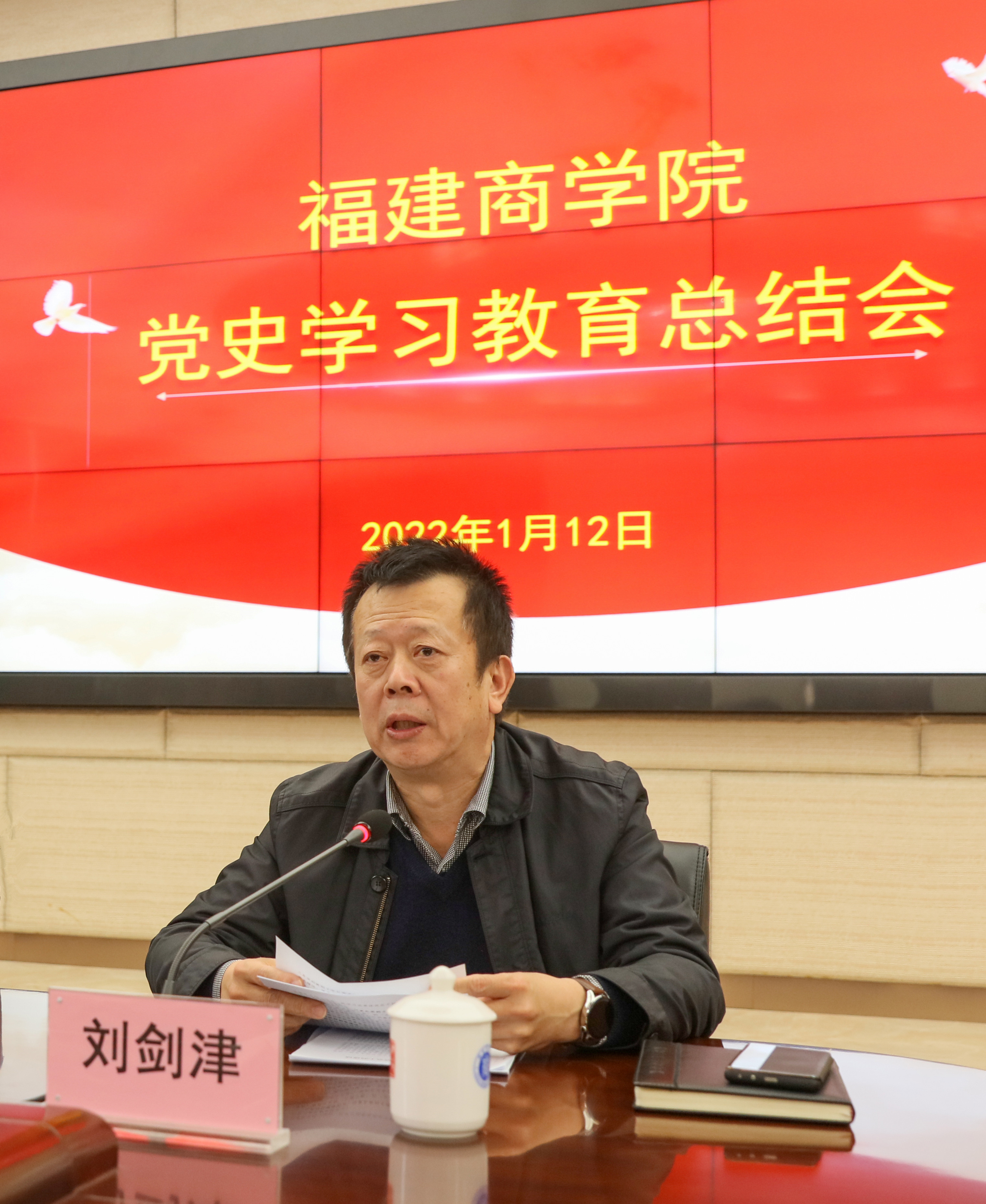 刘剑津强调,要始终坚持以习近平新时代中国特色社会主义思想为指导,认真提炼总结在开展党史学习教育过程中形成的好的经验做法,巩固拓展党史学习教育成果,推动把学习贯彻党的十九届六中全会精神引向深入,引导广大党员干部学深悟透党的创新理论,弘扬伟大建党精神,深刻领悟中国共产党为什么能、马克思主义为什么行、中国特色社会主义为什么好,把思想和行动统一到党中央决策部署和省委工作要求上来,以强烈的历史主动精神奋进新征程、建功新时代,努力推动学校各项事业全方位高质量发展,以优异的成绩迎接党的二十大胜利召开。一要坚持党的领导,以更高的政治站位谋划学校发展新篇章。二要加强理论学习,以更强大的理论武装滋养党员初心使命。三要强化使命担当,以更扎实的工作作风推进各项工作落实。四要抓好制度建设,以更健全的体制机制巩固学习教育成果。