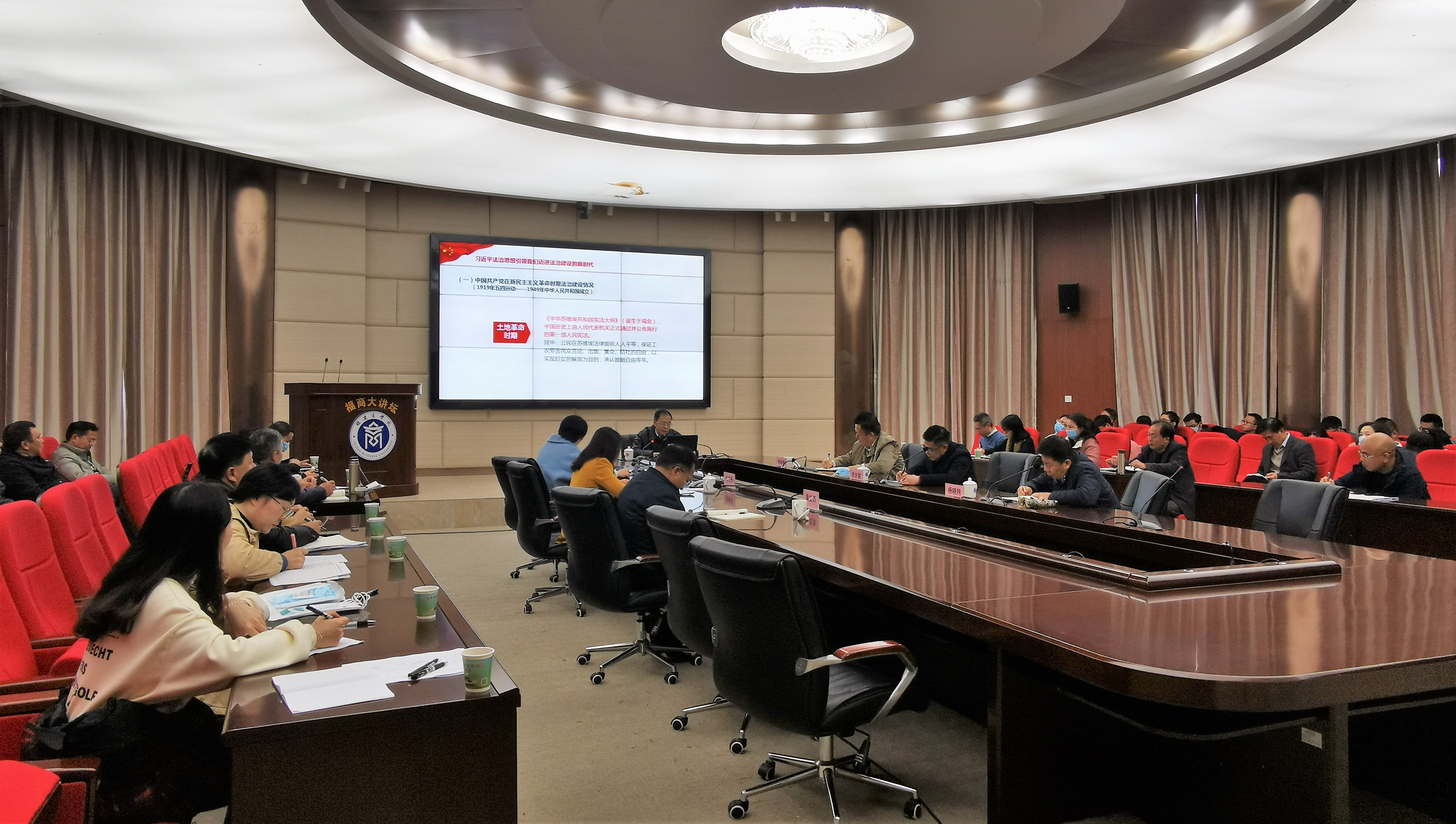 黄岩生副厅长从“习近平法治思想引领我们迈进法治建设的新时代”“习近平法治思想的核心内涵”“在习近平法治思想指引下,全面依法治省工作取得的成效”“坚持以习近平法治思想为统领,把法治作为福建推进全方位高质量发展超越的核心竞争力”等四个方面进行解读,详细介绍了习近平法治思想的理论逻辑、历史逻辑和实践逻辑,全面阐述了习近平法治思想的核心内涵,介绍了我省法治建设取得的成效,并就如何坚持以习近平法治思想为统领,把法治作为我省和高校推进全方位高质量发展超越的核心竞争力作了讲解。