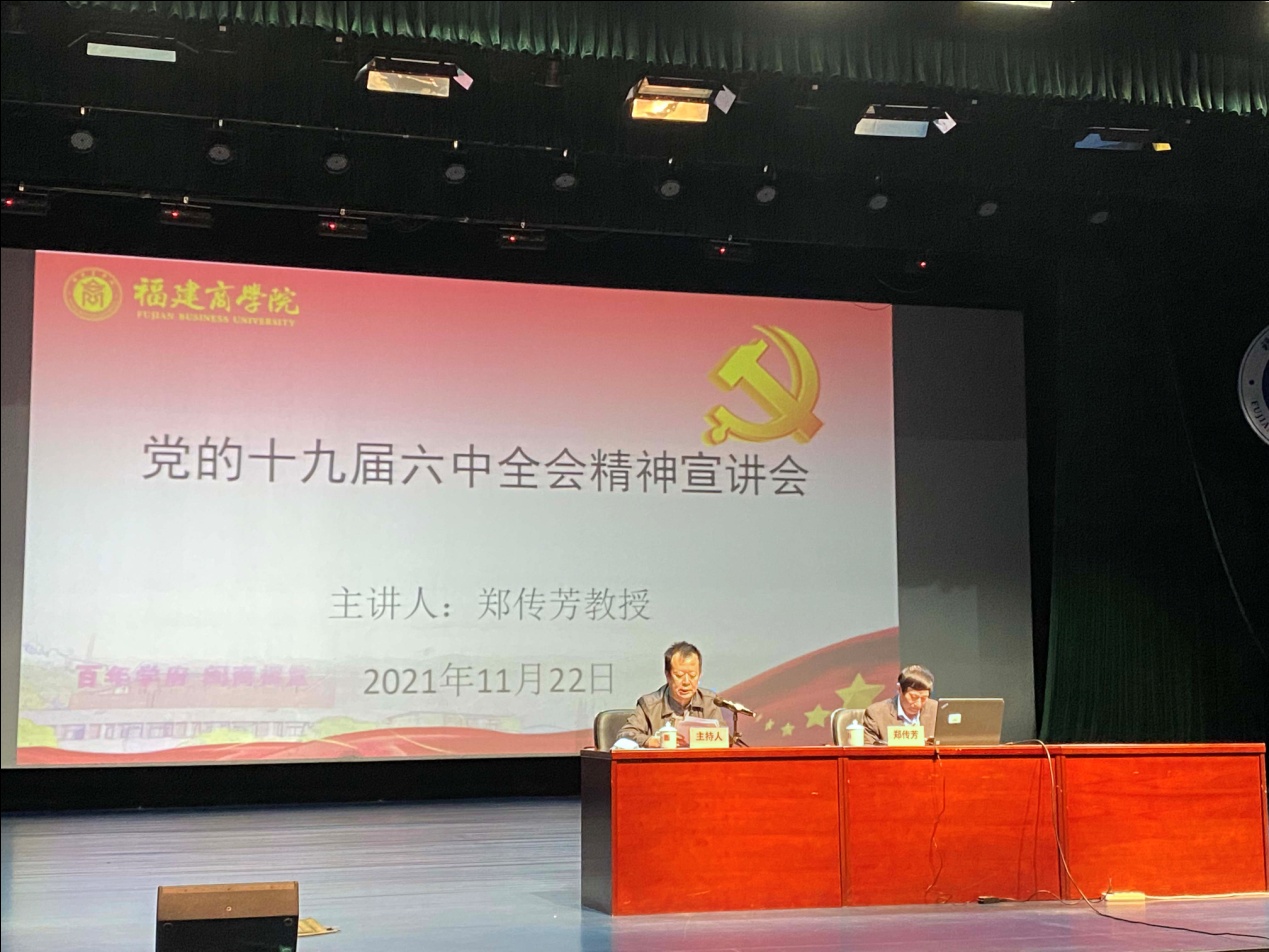 11月22日,bsport官网在连江校区举行党的十九届六中全会精神宣讲培训会。邀请学习贯彻党的十九届六中全会精神省委宣讲团成员、中央马克思主义理论硏究和建设工程首席专家郑传芳教授作辅导报告。在家校领导刘剑津、黄斌、吴访益、杨晓翔、康文杰、黄身勇、蒲文庆和连江校区党员、干部参加宣讲培训会。会议由校党委书记刘剑津主持。