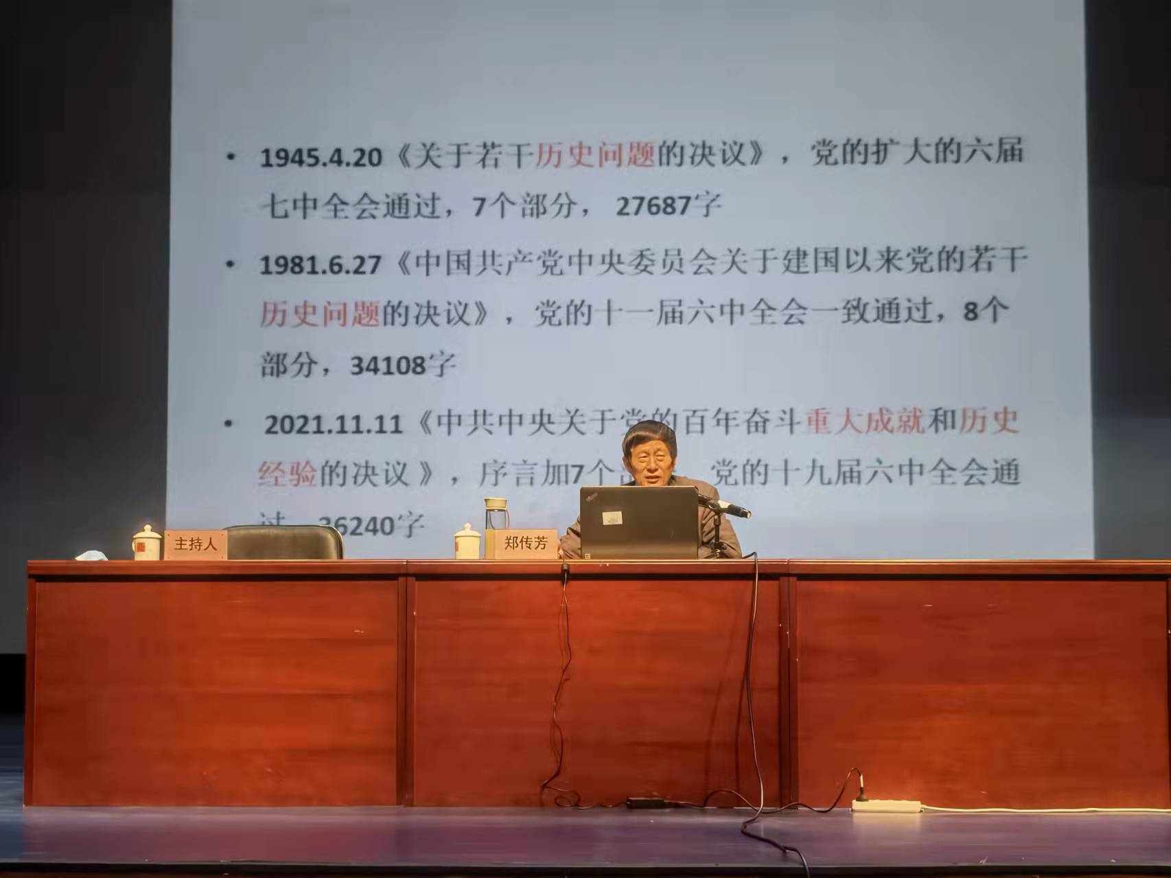 郑传芳从深刻认识总结党的百年奋斗重大成就和历史经验的重大意义,深刻认识党的百年奋斗的初心使命和重大成就,深刻认识中国特色社会主义新时代的历史性成就和历史性变革,深刻认识党的百年奋斗的历史意义和历史经验,深刻认识以史为鉴开创未来的重要要求,从党的百年奋斗历程中汲取智慧和力量等六个方面,对党的十九届六中全会精神作了集中阐释和系统讲解。与会人员表示,整场报告主题鲜明、重点突出、内容丰富,深受启发、备受鼓舞,要以史为鉴、开创未来,埋头苦干、勇毅前行,为学校各项事业高质量发展贡献力量。