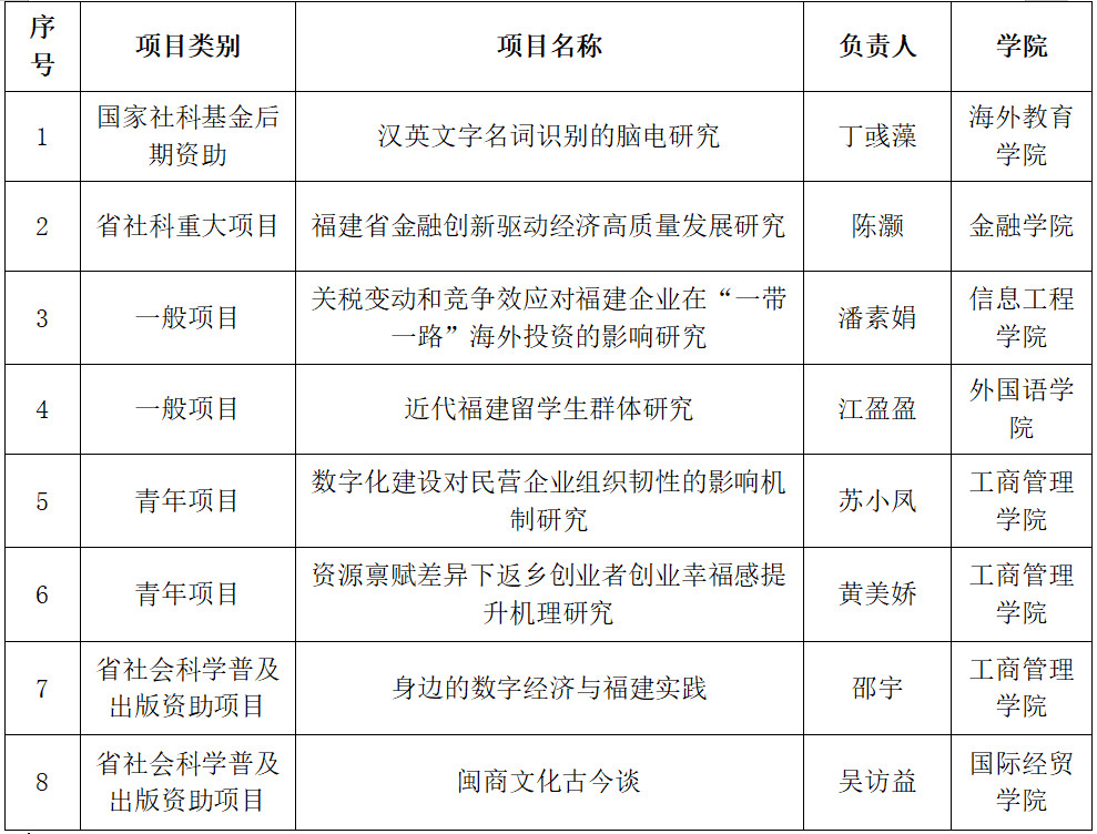 此外,bsport官网省级社科项目也有新突破。金融学院陈灏老师的《福建省金融创新驱动经济高质量发展研究》项目阶段性成果入选省委政研室《调研文稿》,获省社科基金重大项目正式立项。