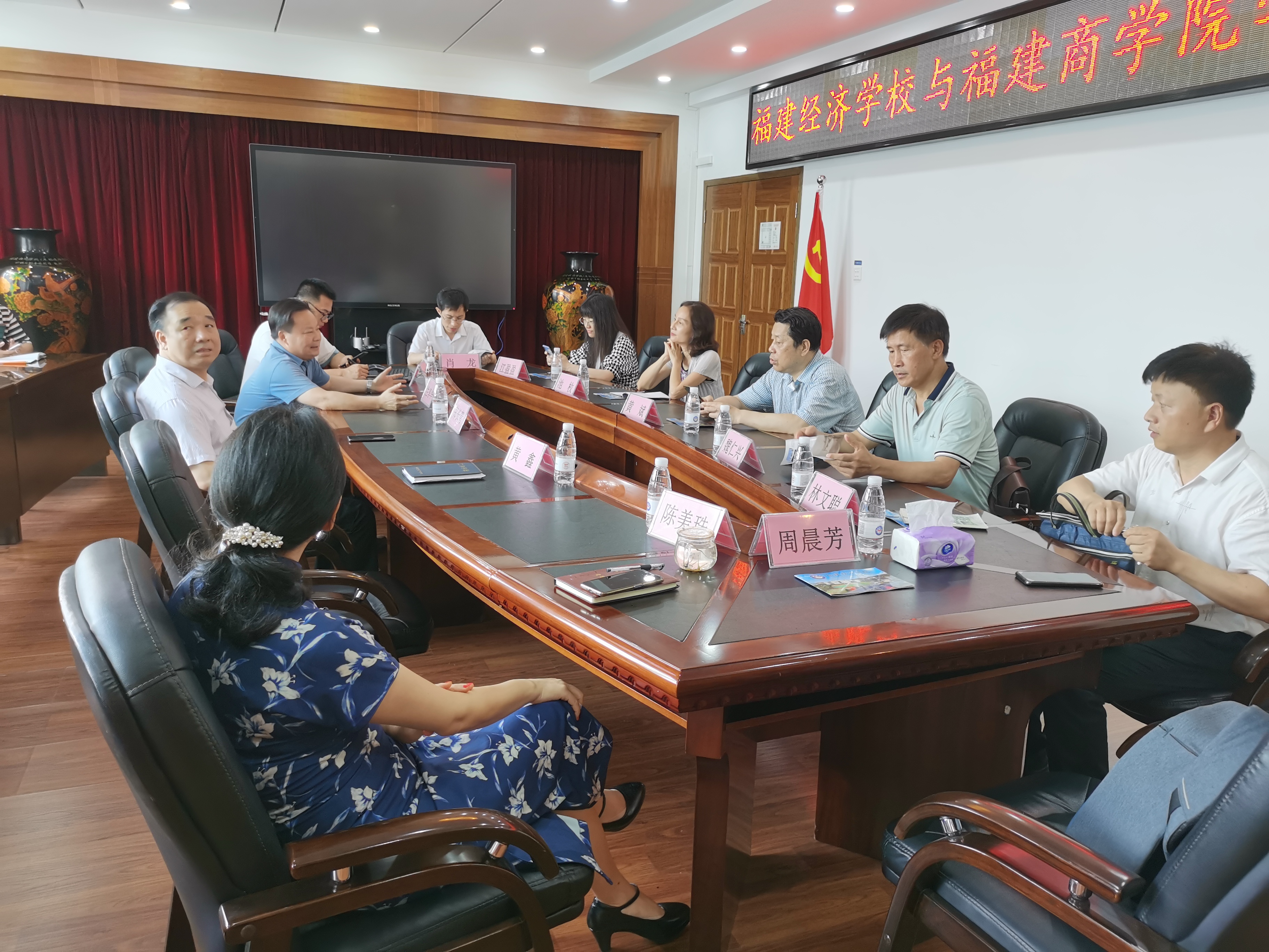6月3日下午,校长黄斌一行6人前往福建经济学校调研、洽谈合作办学事宜。福建经济学校校长郑长青及相关职能部门人员全程陪同。