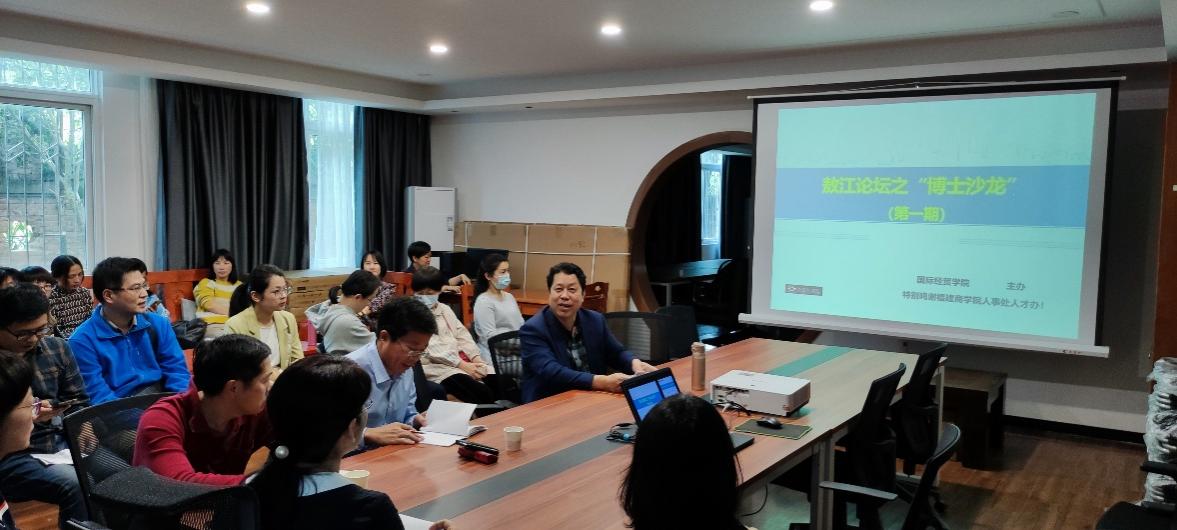 为贯彻落实学校提出的“坚持内涵发展,以人才培养工作为中心,人才强校”和 “再学习、再调研、再落实”的要求,4月21日,国际经贸学院在鼓楼校区22号楼“人才之家”举办敖江论坛之“博士沙龙”第一期。校长黄斌、人事处人才办负责人和20余名来自各学院、处室的博士、教师参加活动。