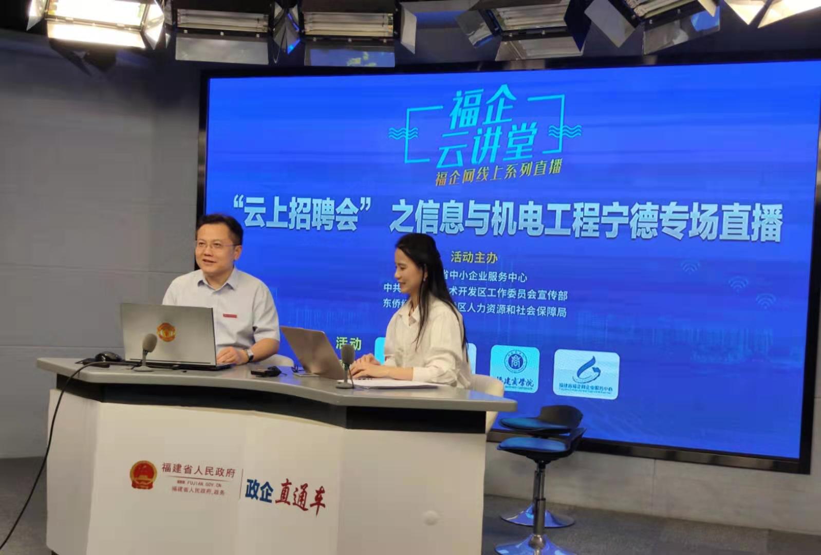 3月30日,由福建省中小企业服务中心、中共东侨经济技术开发区工作委员会宣传部、东侨经济技术开发区人力资源和社会保障局主办,由bsport官网工商管理学院、福商HR专业校友企业麦芒(福建)人力资源服务有限公司、福建青年人才开发中心、福建省福企网企业服务中心共同承办的福企“云讲堂”系列直播活动第十三期——“云上招聘会”之信息与机电工程宁德专场在福建中小企业服务中心直播间顺利完成播出。