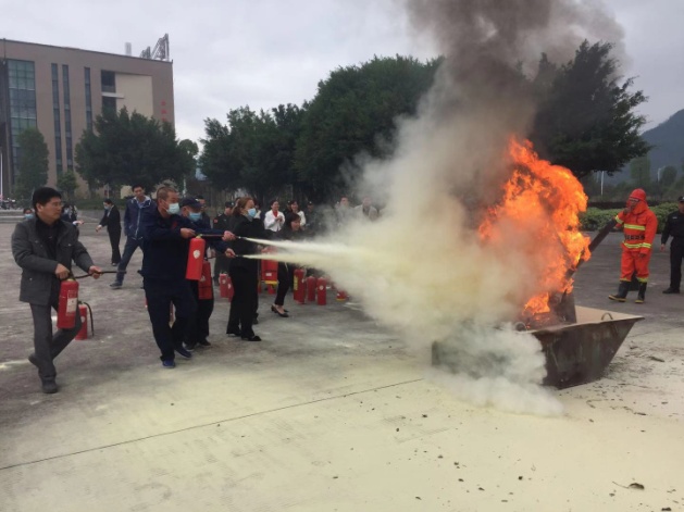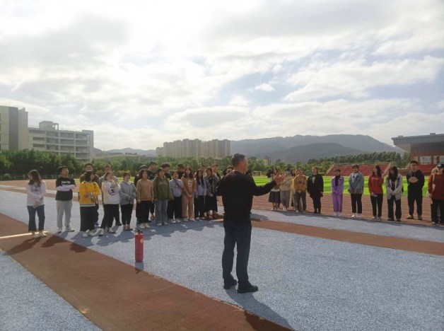 活动中,安全保卫处消防工作人员详细讲解了火灾的扑救、逃生、自救等方法,以及手提式干粉灭火器灭火的适用范围和使用技巧。随着火苗点起,在现场工作人员的指挥下,参加活动的教职员工和学生纷纷上前,拿起灭火器按规范动作迅速扑灭了预设的火源。在疏散演练中,参演学生在引导员的引导下,用湿毛巾捂住口鼻,身体伏弯,井然有序地从应急安全出口撤离到预定的集中点。