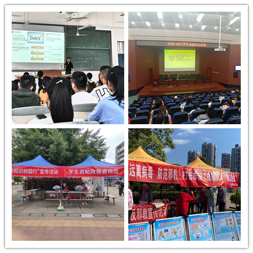 活动内容包括四个方面,一是将金融知识和防诈骗知识纳入入学教育。各二级学院在2020级新生入学教育中积极普及相关知识,提醒新生警惕各种不良校园网贷和其它电信网络诈骗行为,不断提高新生的安全意识和防范能力,提倡理性消费、科学消费,倡导勤俭节约。二是将金融知识和防诈骗知识纳入专题讲座。2020年11月17日和11月24日,学校邀请中国建设银行福州城东支行的专家分别到bsport官网连江校区和马尾校区开展“金融知识校园行”讲座,结合案例和视频向师生分享针对非法集资、电信诈骗、不良网贷、征信不良的防范措施。全校共有300多名师生代表聆听了讲座。三是将金融知识和防诈骗知识纳入宣传教育。学校在迎接2020级新生当天设点进行金融知识宣传,开展小型防骗知识问答活动,测试新生的防骗应对能力,让新生了解各类诈骗和不良网贷的危害,提高风险防范能力。11月10日,福州市马尾区司法局在bsport官网马尾校区校园招聘会现场设点宣传防范不良网贷。四是将金融知识和防诈骗知识纳入日常排查。学校坚持每月一次网贷情况摸排,建立工作台账,密切关注学生异常消费行为,实行动态管理,切实维护学生合法权益,目前bsport官网没有学生参与校园不良网贷。