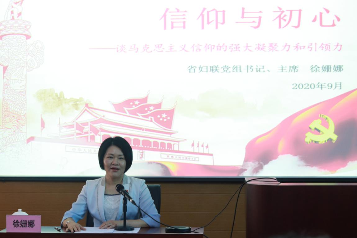 会议邀请省妇联党组书记、主席徐姗娜同志作专题报告。徐姗娜主席以“信仰与初心——谈马克思主义信仰的强大凝聚力和引领力”为题,从“信仰追问和共产党人的初心”“马克思主义世界观和方法论”“习近平新时代中国特色社会主义思想蕴含的马克思主义立场观点和方法”“在增强四个意识、坚定四个自信中坚守信仰和初心”“在防范化解意识形态领域风险中坚定信仰与初心”五个方面阐述了中国共产党人的信仰和初心就是马克思主义,指出习近平新时代中国特色社会主义思想与马克思主义是一脉相承的,是当代中国的马克思主义。引导大家要坚定马克思主义的立场、观点、方法,即人民的立场、实践的观点、辩证唯物主义的思想方法,并引用习近平总书记关于信仰和初心的重要讲话与大家共勉。