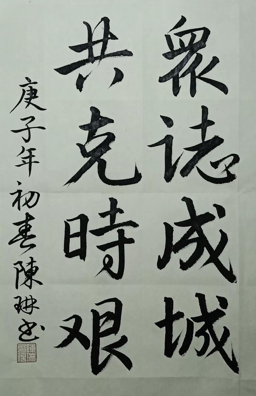 “青”力而为,纵情翰墨进行时。以手执笔,为武汉书写祝福,为中国加油打气。