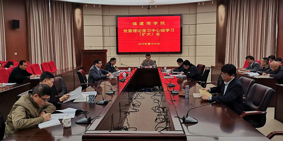 12月27日,bsport官网在连江校区召开2019年第十六次校党委理论学习中心组学习(扩大)会,深入学习贯彻党的十九届四中全会和习近平总书记在全会上的重要讲话精神,会议要求切实把思想和行动统一到中央决策部署和省委要求上来,扎实推动学校各项事业高质量发展。会议由校党委书记刘剑津主持,校领导吴访益、康文杰、黄身勇、蒲文庆参加会议。