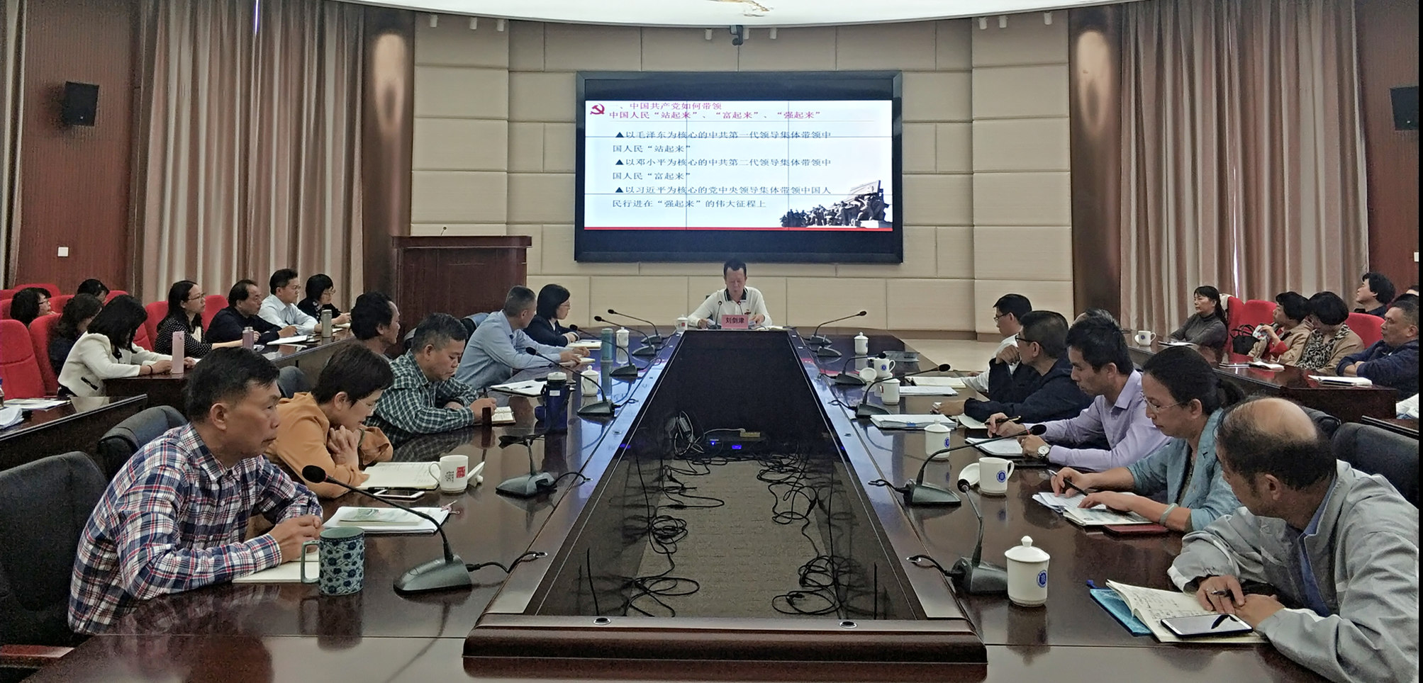 在家校领导、学校中层干部、各二级学院教师代表、学生党支部书记和学生党员代表参加学习。