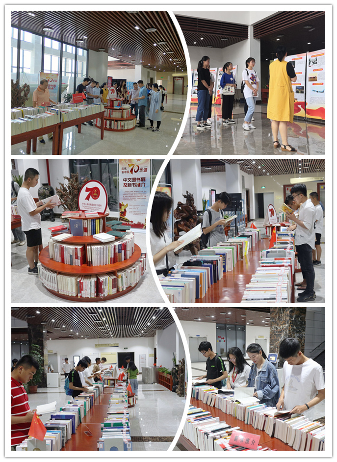 展览吸引了不少师生前来参观,他们有的认真翻看图书,有的结伴站在一起边看展板边交流。本次图书展分主展区和新书推介区,共展出图书3000余册。主展区精选有关马克思列宁主义、毛泽东思想、习近平新时代中国特色社会主义思想、祖国发展历程等主题图书1000余册,新书推介区主要为读者推介近2年来各学科领域出版的新书、好书2000余册。图片展以“破冰前行”“大国崛起”“伟大复兴”三个部分讲述了我国改革开放以来的多个“第一”,展出了中外知名摄影家经典名作共71张,展示了政治、经济、科技、教育、医疗和文化生活等领域的历史性照片,系统地呈现了新中国成立70周年尤其是改革开放以来所取得的伟大成就。