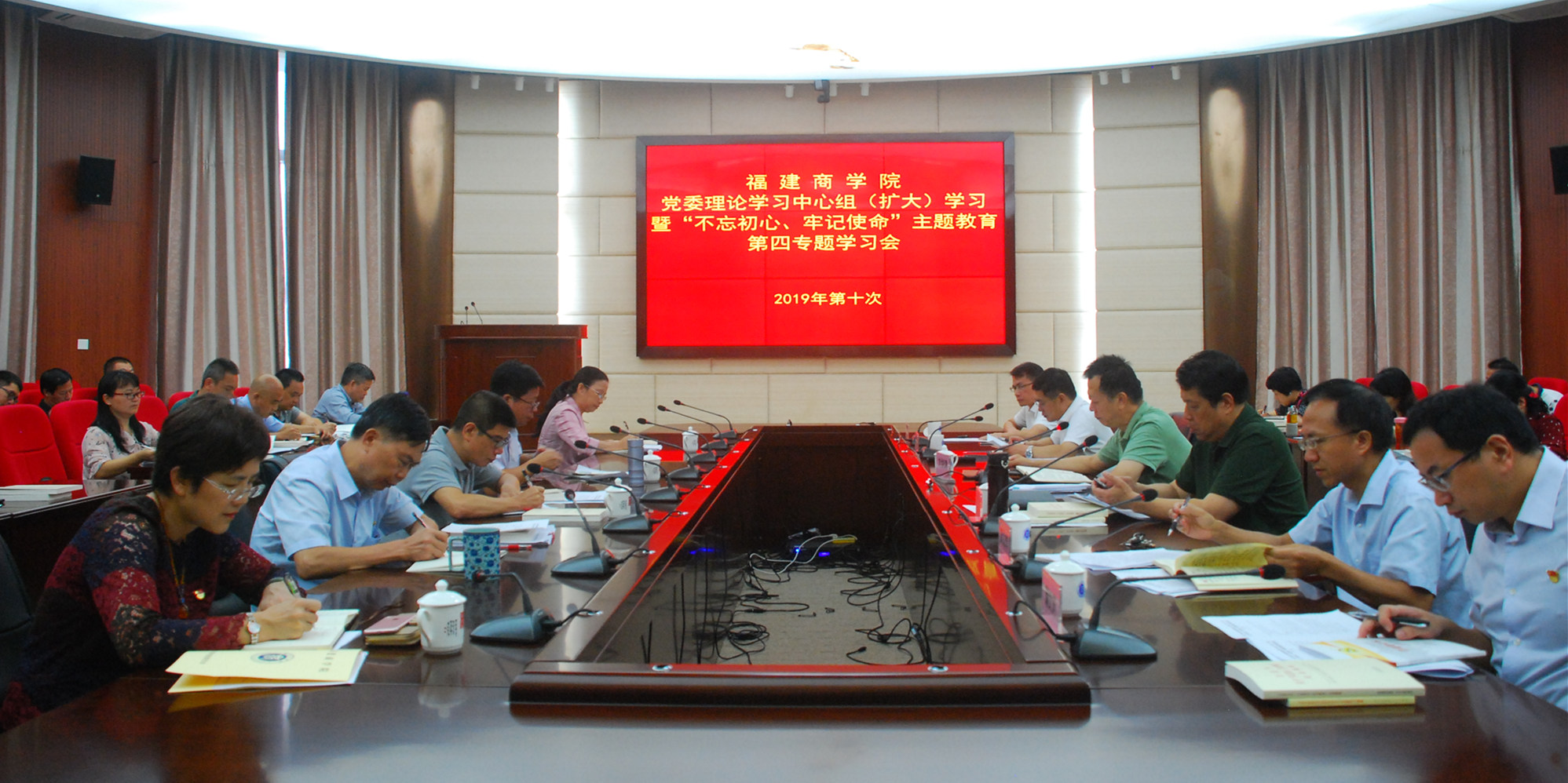 10月9日上午,bsport官网在连江校区召开2019年第十次校党委理论学习中心组(扩大)学习暨“不忘初心、牢记使命”主题教育专题学习会,10日下午开展主题教育第四专题集中学习研讨。校党委领导班子、部分二级学院负责人和机关党员干部在前期充分自学的基础上,在会上围绕“牢记为民宗旨,坚持‘四下基层’,践行群众路线,始终保持同人民群众的血肉联系”这一主题,聚焦学习贯彻习近平总书记关于“不忘初心、牢记使命”的重要论述,进行研讨交流。校“不忘初心、牢记使命”主题教育领导小组组长、校党委书记刘剑津主持会议并发言。副校长蒲文庆作主题发言,校党委副书记、校长黄斌,校党委副书记吴访益,副校长康文杰和校纪委书记黄身勇出席会议。