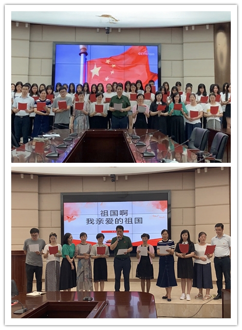 活动现场,伴随着优美熟悉的旋律,在黄斌校长的带领下师生党员齐声歌唱《我和我的祖国》,用激情澎湃的歌声,抒发师生对党和国家的热爱之情,祝愿伟大祖国更加繁荣昌盛。饱满的精神状态、深情的表白、悠扬的歌声,充分展示了学院教职工和广大学生积极向上、奋发有为的精神面貌。