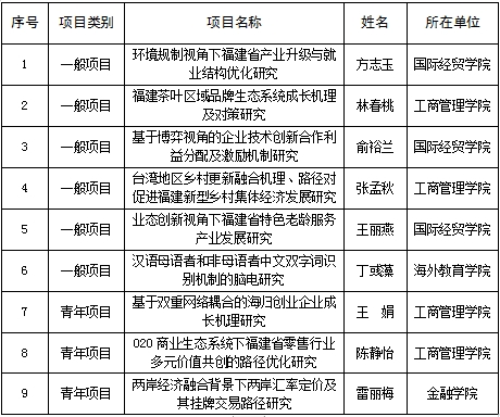 近日,福建省哲学社会科学规划办公室公布了2019年度社会科学规划项目立项结果,bsport官网推荐项目中9项获得立项资助(其中一般项目6项、青年项目3项),立项数位居省应用型本科高校前列。