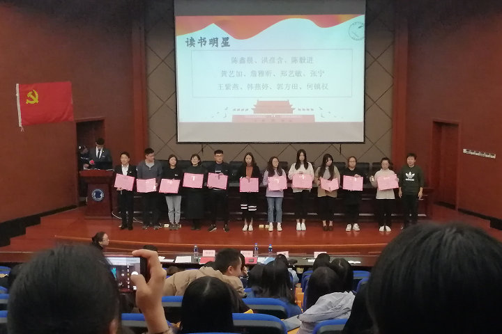 大会表彰了读书社优秀社员、读书明星、优秀干事、优秀干部和优秀学习小组。结合各学习小组的学期表现和成果汇报情况,海外教育学院学习小组获最佳风采奖,金融系学习小组获一等奖,会计系学习小组、国际经济与贸易系学习小组获二等奖,工商管理系、外语系、人文与公共管理系3个学习小组获三等奖。