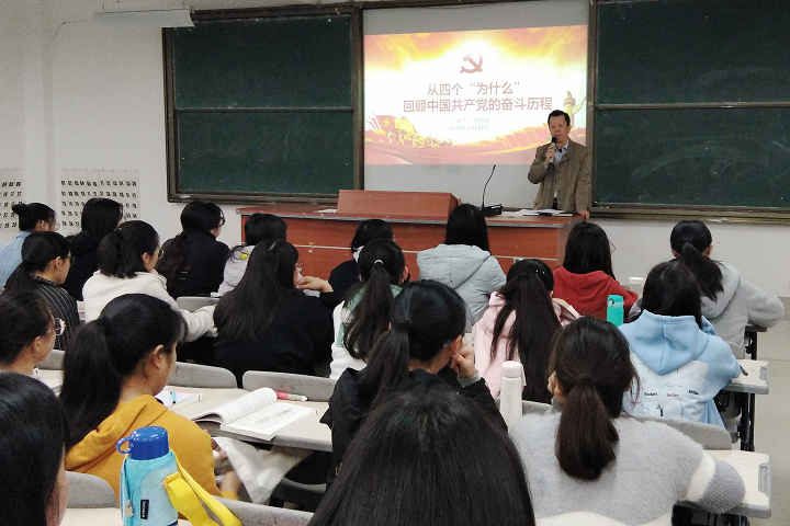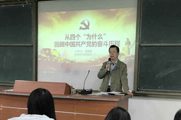 12月13日上午,校党委书记刘剑津在连江校区诚信楼中阶2教室,为学生讲授了一堂题为《从四个“为什么”回顾中国共产党的奋斗历程》的思想政治理论课。2018级会计1、2班的一百多名学生参加了学习。