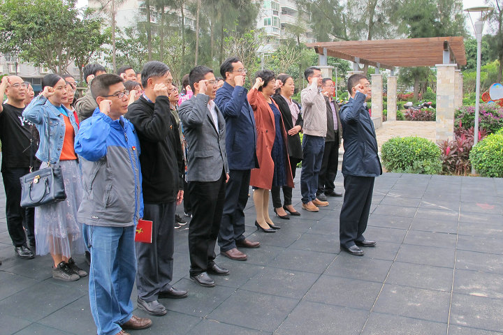 在东门社区党建公园重温入党誓词