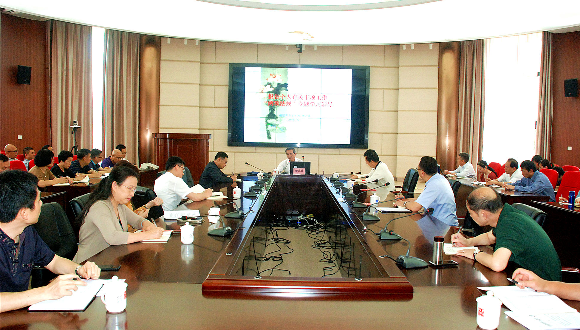 曾志斌巡视专员结合自身的工作实践,从五个方面对新形势下领导干部如何做好个人有关事项报告工作做了全面细致的解读。一是开展领导干部报告个人有关事项工作的历史沿革。分为探索起步、实践推进、修订完善、创新发展四个阶段,形成了《领导干部报告个人有关事项规定》《领导干部个人有关事项报告查核结果处理办法》(中办发〔2017〕12号)两项法规。二是开展领导干部个人有关事项报告抽查核实的主要背景。开展抽查核实工作是中央和省委贯彻从严管理监督干部的一项重要举措和制度创新,是了解掌握干部状况的有效渠道,是严格执行《干部任用条例》的一个必要环节。三是开展领导干部个人有关事项报告抽查核实的基本情况。从中央领导评价、中外对比情况、发现问题情况以及我省实际情况等方面通报了开展个人有关事项报告抽查核实的成效。四是领导干部报告个人有关事项工作“两项法规”简要解读。对报告对象范围、事项内容、抽查核实的规定、查核的具体事项、漏报瞒报具体情形等方面做了解读。五是填报《领导干部个人有关事项报告表》需要注意的具体要求。从关于集中填报,填报持有大陆居民往来台湾通行证,填报“子女”、“共同生活的子女”、“子女的配偶”,填报房产,填报金融投资方面,填报经商办企业等六个方面作了详细解读。辅导报告体现了很强的理论性、政策性、实践性,对全校领导干部进一步理解并做好个人有关事项报告工作起到很好的指导、教育和帮助作用,参会同志纷纷表示受益匪浅。