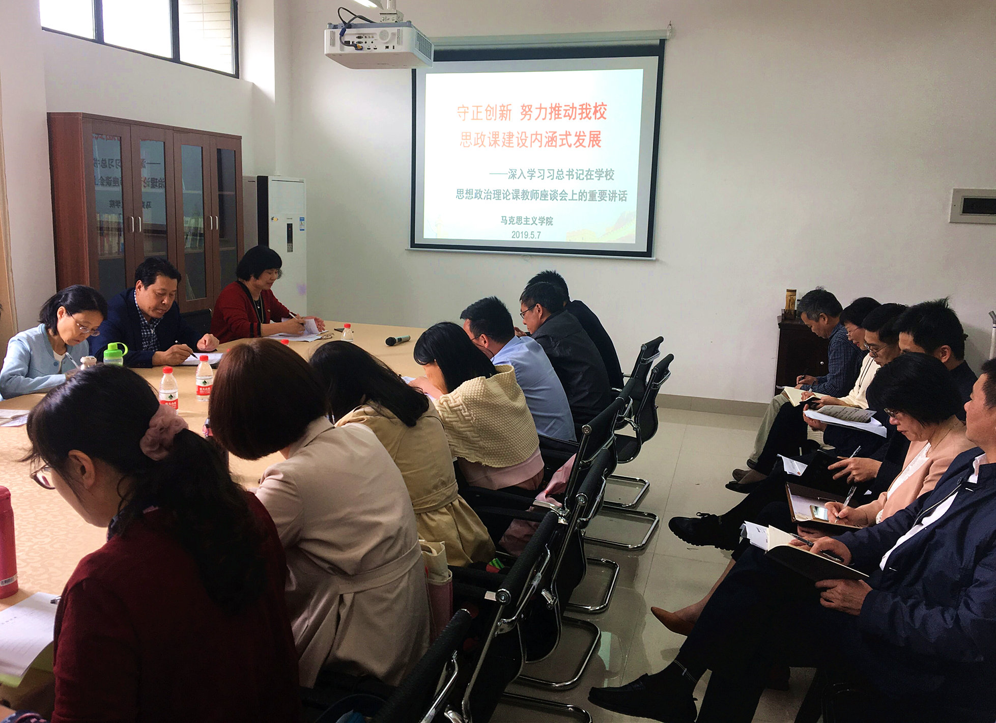 5月7日下午,马克思主义学院召开“守正创新,努力推动bsport官网思政课建设内涵式发展”研讨会。黄斌校长、吴访益副书记出席会议,人事处、教务处、科研处、学生处、后勤处负责人以及马克思主义学院全体教师参加会议。
