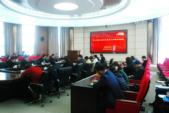 3月12日,校党委书记刘剑津就深入学习全面贯彻全国、全省教育大会精神,不断推动学校教育事业取得新发展作宣讲报告,校党委副书记吴访益主持报告会,校党政群部门、教辅机构、院(系)党政第一、二负责人及所有正科级以上干部等120余人参加了报告会。
