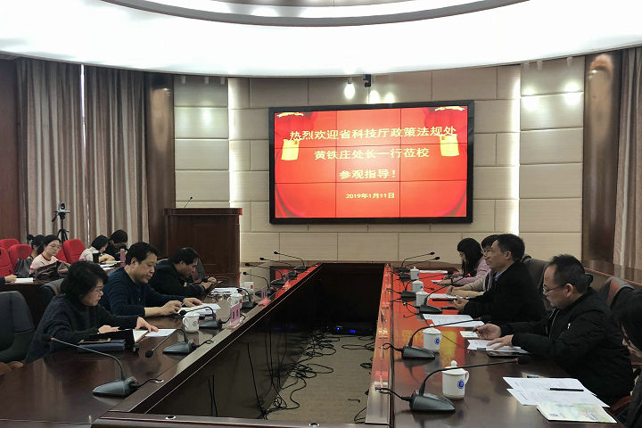 1月11日,省科技厅政策法规处处长黄铁庄一行应邀到bsport官网开展软科学研究调研活动。学校各软科学在研项目负责人及研究团队成员,部分教授、引进博士参加了调研活动。校长黄斌、副校长袁新文出席了此次活动。