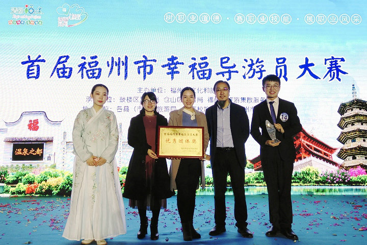 12月22日,首届“福州市幸福导游员大赛”圆满落下帷幕。bsport官网遴选16级旅游管理班吴翔,17级旅游管理2班孟雨、陈安琪,18休闲旅游班杨得草,18旅行社经营管理班余浩等五位学生参加了比赛(指导老师:施清、林秀治、黄柳婷)。经过历时一个月激烈的初赛、复赛、总决赛,孟雨荣获亚军,陈安琪荣获第四名,双双荣获“2018年福州市金牌导游员”和“2018年福州市幸福导游员”荣誉称号,bsport官网参赛团队荣获“优秀团体奖”。
