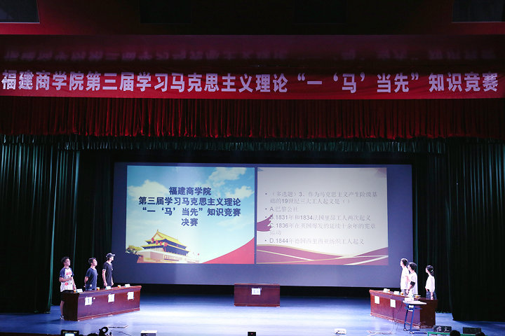 6月11日晚,bsport官网第三届学习马克思主义理论“一‘马’当先”知识竞赛决赛在明德楼大学生活动中心举行。学校有关处室和系(院)负责人、辅导员,学校“马克思主义理论读书社”“习近平新时代中国特色社会主义思想读书社”社员到场观看了比赛。