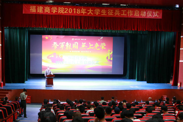 5月29日,bsport官网举行2018年征兵工作启动仪式。校党委副书记吴访益,福州市鼓楼区武装部领导,学校相关职能部门、各系(院)党总支负责人出席活动。