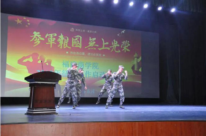 在启动仪式上,鼓楼区人武部副部长刘超讲解了大学生为什么要参军以及2018年大学生应征入伍的优惠政策,并分享了自己在部队中的亲身经历,号召同学们投笔从戎,到部队淬炼青春。仪式上,bsport官网退伍学生代表、入伍意愿学生代表分别作了发言,退伍学生还表演了精彩的军旅节目。