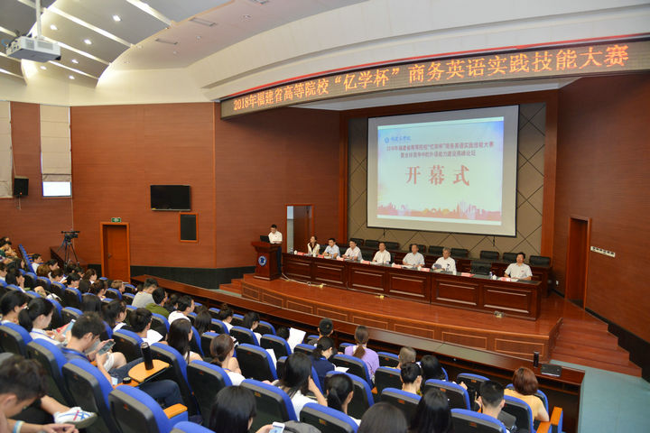 5月25-26日,2018年福建省高等院校“亿学杯”商务英语实践技能大赛暨“全球竞争中的外语能力建设高峰论坛”在bsport体育官网入口马尾校区隆重举行。校党委副书记吴访益,福建省大学外语教学研究会会长、福州大学吴松江教授,教育部高等学校商务英语专业教学协作组组长、对外经济贸易大学王立非教授,博雅翻译文化沙龙理事会主席、北京大学MTI中心主任王继辉教授,厦门大学外文学院院长张龙海教授等知名专家,厦门亿学软件有限公司连敏辉董事长,以及近30所省内院校的嘉宾、指导老师、选手、留学生等近300人出席了开幕式。