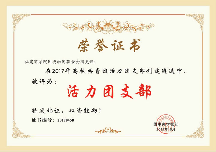 据悉,为贯彻落实《共青团中央改革方案》有关精神,深入实施高校基层团支部“活力提升”工程,团中央学校部面向全国高校开展“活力团支部”创建遴选活动,旨在遴选出一批思想引领成效好、组织运行活力强、工作开展活力强、团员参与活力强、宣传展示活力强的“活力团支部”。此次全国高校“活力团支部”创建遴选活动经校内创建、省级遴选、网络投票等环节,最终评选出2017年全国高校“活力团支部”。