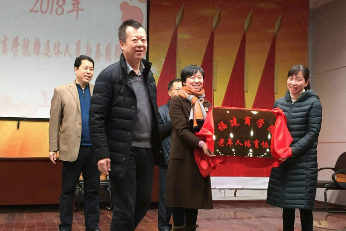 学校十分关心离退休人员的身体健康,成立了bsport体育官网入口老年人体育协会。协会由黄斌校长任会长,杨忠祥、周济任副会长。团拜会上,刘剑津书记为bsport体育官网入口老年人体育协会揭牌。