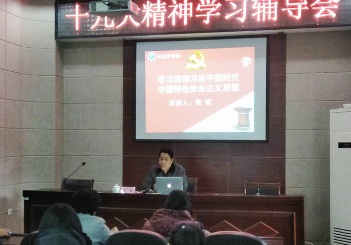 1月2日下午,黄斌校长以“学习贯彻习近平新时代中国特色社会主义思想”为主题,为金融系、海外教育学院全体党员和教职工宣讲党的十九大精神。