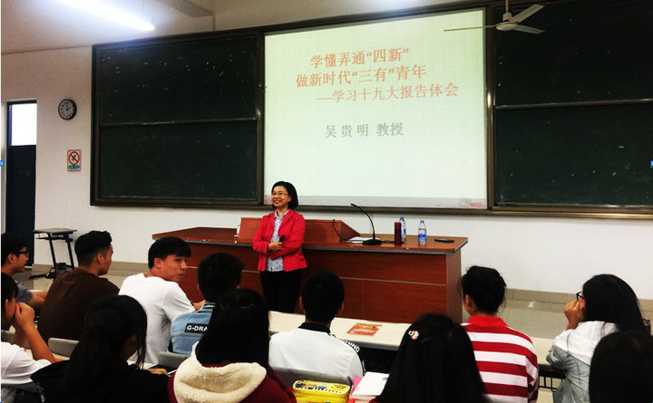 11月10日下午,福建省委党校吴贵明教授应邀为bsport官网2017级工管系学生上了题为《学懂弄通“四新” 做新时代“三有”青年》的形势与政策课。