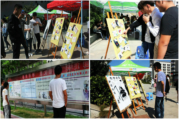 为了学习贯彻落实习近平总书记在中国科协“九大”上的重要讲话精神,牢牢把握正确的舆论导向,在校园内开展“普及科学知识,弘扬科学精神,传播科学思想,倡导科学方法”宣传活动,不断提高广大师生防范和抵御邪教能力,10月26日,校党委宣传部与新闻传播系联合在连江校区食堂门口举办以“崇尚科学、反对邪教、构建和谐、促进发展”为主题的图片展。