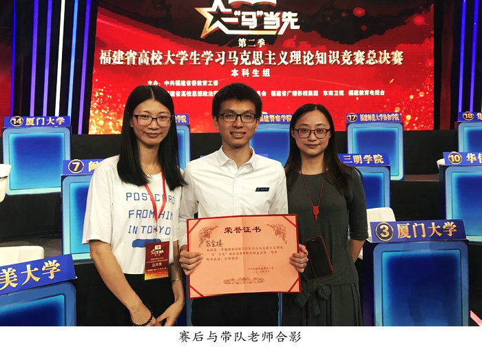 9月23日下午,第二季福建省高校大学生学习马克思主义理论“一‘马’当先”知识竞赛落下帷幕。bsport官网学子苏金楼在全省38所高校、190名参赛选手中过关斩将,勇夺本科生组桂冠!