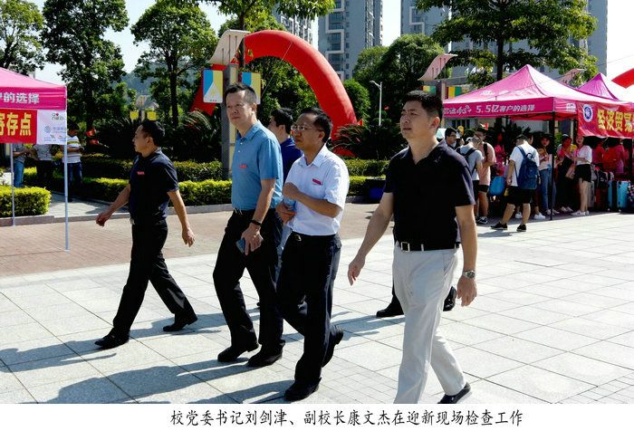 迎新当天,校党委书记刘剑津、校长黄斌等校领导带领有关部门负责人分别查看了连江、马尾校区新生报到处,认真检查迎新工作情况,亲切看望新生及其家长,了解家庭经济困难新生入学“绿色通道”的落实情况,并对各部门、各系为迎新工作的辛勤付出,给予充分的肯定。当天,相关部门还积极做好新生入学安全教育工作,及时提醒新生和家长增强防盗、防骗、防推销和防“校园贷”等的防范意识,避免其造成不必要的财产损失。