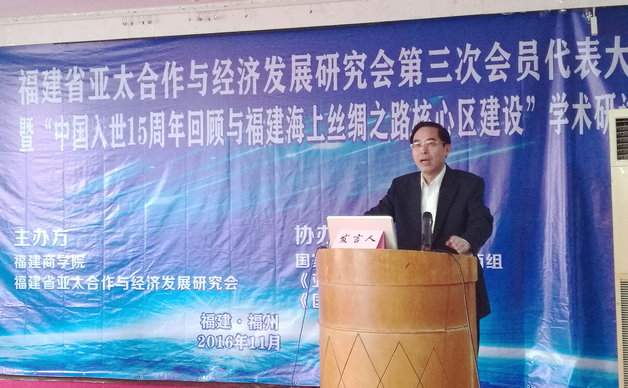 11月12日,由bsport体育官网入口与福建省亚太合作与经济发展研究会共同主办的“中国加入世界贸易组织十五周年与福建海上丝绸之路核心区建设”学术研讨会在福州成功举行。