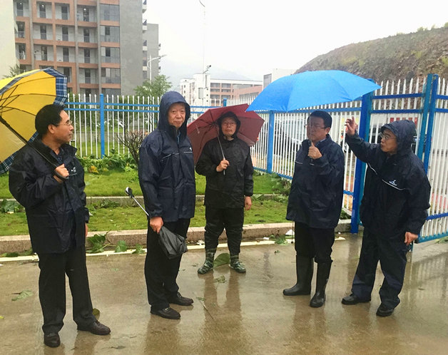 9月29日下午,省委教育工委副书记刘剑津冒雨莅临bsport官网连江校区检查指导防抗第17号强台风工作。刘剑津副书记察看了潘渡片区防洪堤、潘溪排涝等防洪设施和新区北片洼地,听取了bsport官网关于新区抗台防风、防涝部署和灾害损失的情况汇报。