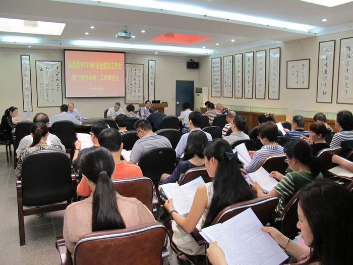 党委副书记、纪委书记陈武回顾总结了2015年学校的安全稳定工作,肯定了工作成绩,指出了工作中存在的问题与不足。根据省教育厅今年综治安全稳定工作要求,他还对2016年学校安全稳定工作进行了部署,重点对“两项创建”工作进行了安排。他强调,“两项创建”评审工作对学校转型发展具有全局性重要意义,全校各部门要按照创建要求,明确责任,抓好落实。