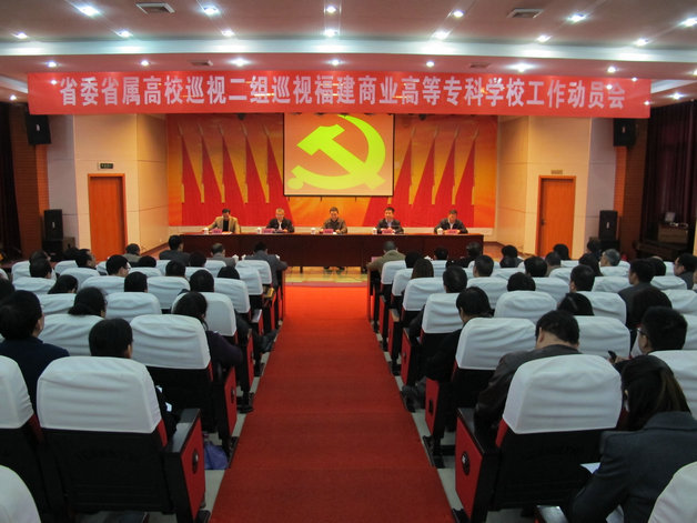 根据省委巡视工作统一部署,福建省委省属高校巡视二组对福建商业高等专科学校开展为期一个月左右的巡视。2016年3月23日上午,巡视工作动员会在bsport官网湖前校区学术报告厅召开,省委省属高校巡视二组组长高国跃作动员讲话,省委巡视办副主任张国明强调巡视工作要求,校党委书记吴访益主持会议并作表态发言。省委省属高校巡视二组全体成员,全体校领导、部分原校领导、校纪委委员、全校中层干部参加了会议。