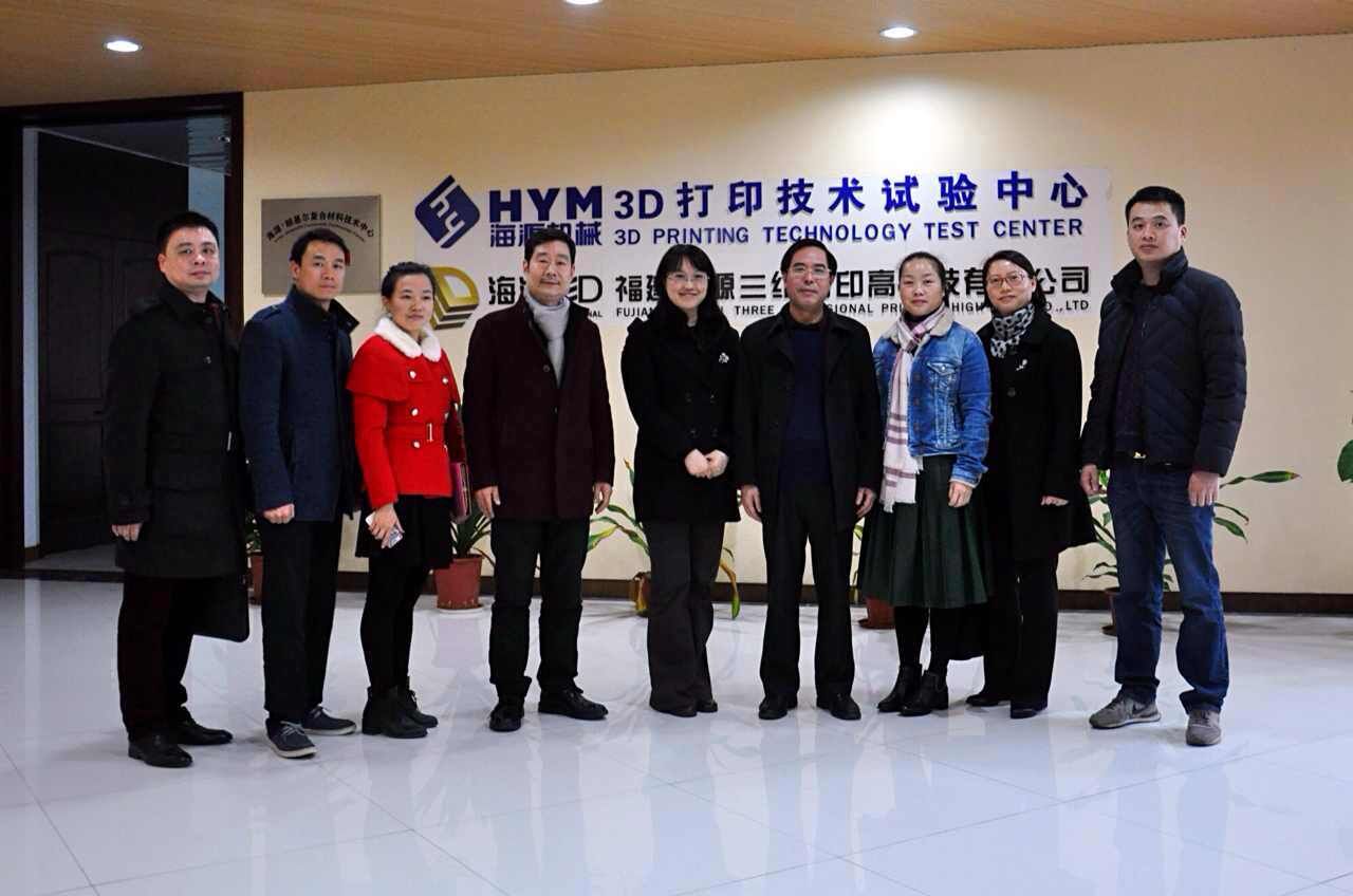 2016年3月17日下午,在校长袁新文教授的带领下,校企合作与实训处处长刘莉萍、商业美术系主任叶林心和产品造型专业负责人周海彬一行应邀前往福建海源三维打印高科技有限公司参观交流,实地了解3D打印行业的发展情况及其与bsport官网相关专业的合作前景。