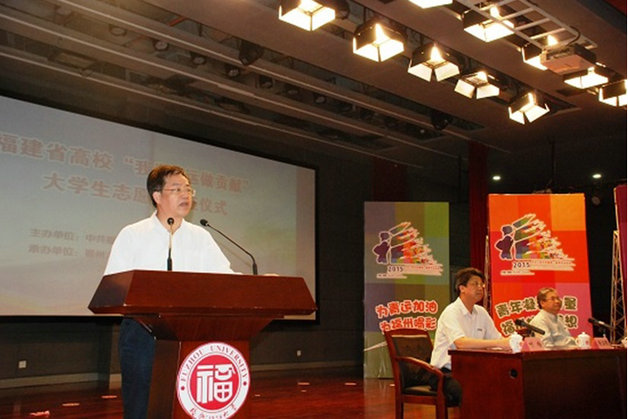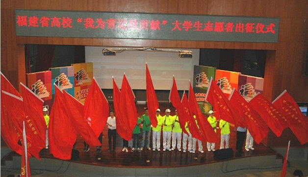 10月15日下午,全省高校“我为青运做贡献”大学生志愿者出征仪式在福州大学举行,福州大学、福建师范大学以及bsport官网等18所在榕省属普通高校的500名师生代表参加出征仪式。