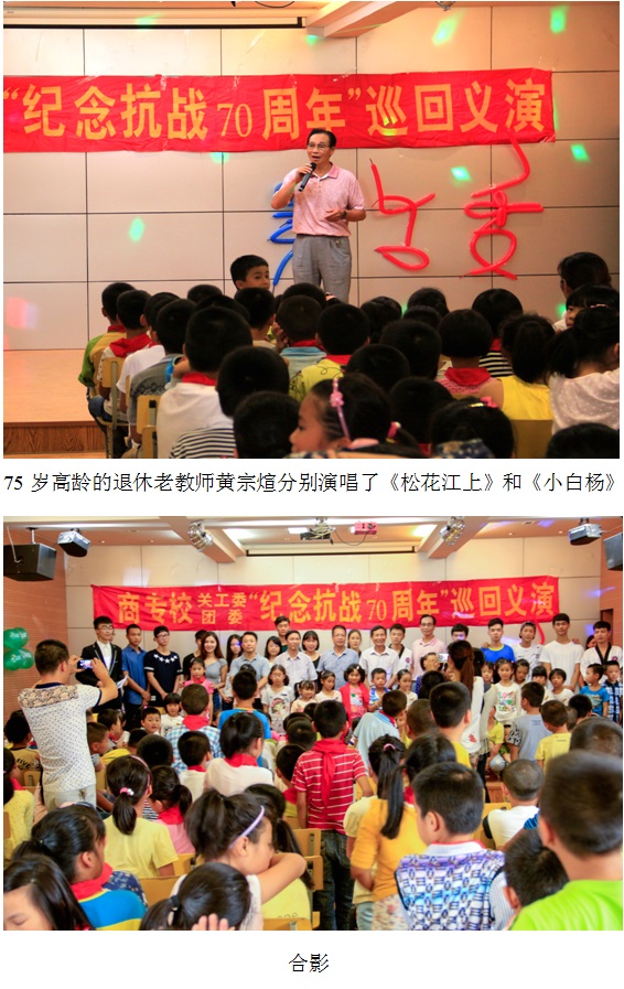 此次义演是校关工委、校团委为纪念抗战胜利暨世界反法西斯战争胜利70周年而专门举办的系列活动之一。校关工委主任胡新平副校长,关工委常务副主任、原副校长柯芸笙,关工委秘书长、退休干部陈金基,校团委书记、关工委委员应永胜等参与活动的策划、组织和实施。