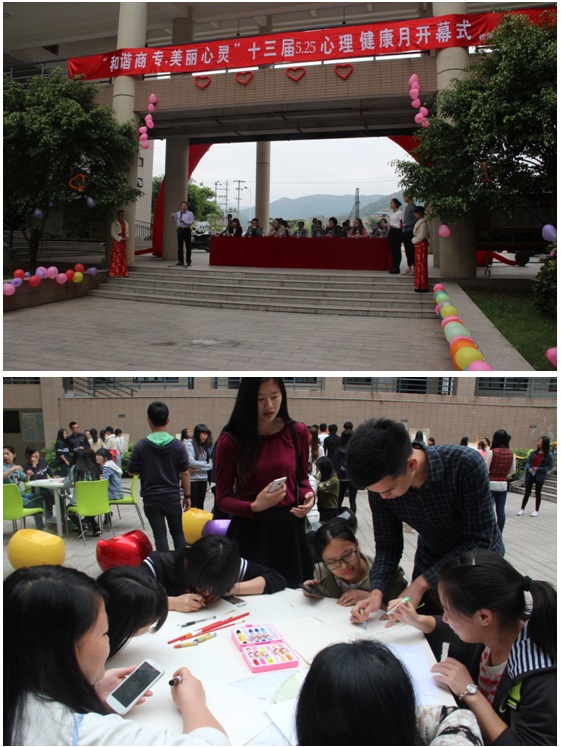 为丰富bsport官网大学生的校园文化生活,加强大学生综合素质的全面发展,深入开展bsport官网学生心理素质教育工作,提高学生心理健康水平,构建和谐校园,由校学生处心理咨询中心举办、校蒲公英心理社承办的以“和谐商专、美丽心灵”为主题的第十二届525心理健康月开幕式暨心灵涂鸦活动于5月5日下午在bsport官网新区展开。校党委副书记黄跃舟以及各系党总支书记、各系团总支、辅导员代表、学生代表参加了本次活动。